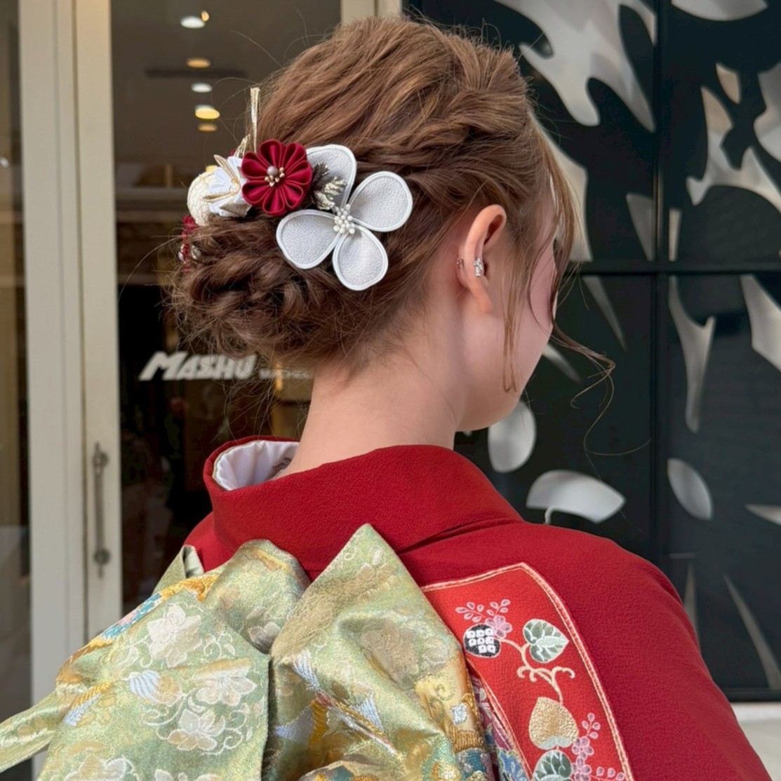 MASHUのヘアセットは、お着物のテイストや雰囲気に似合うのはもちろん、トレンド感やニュアンスが出るような一層魅力的に見せるヘアセットです。